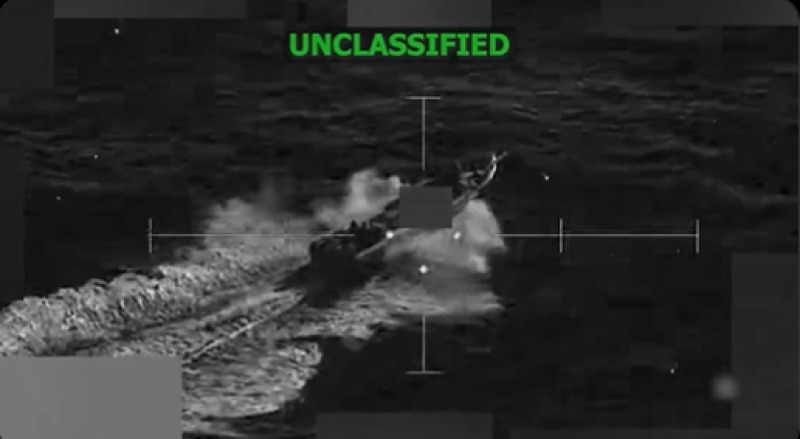 Las Fuerzas Armadas estadounidenses acompañaron la publicación del ataque con un video donde se observa a un buque en movimiento que resulta impactado.