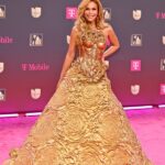 Celebridades como Thalía destacaron con diseños elegantes y memorables, combinando brillo y estructuras sofisticadas que marcaron tendencia y reforzaron la alfombra como un evento de moda tan importante como su lado musical.